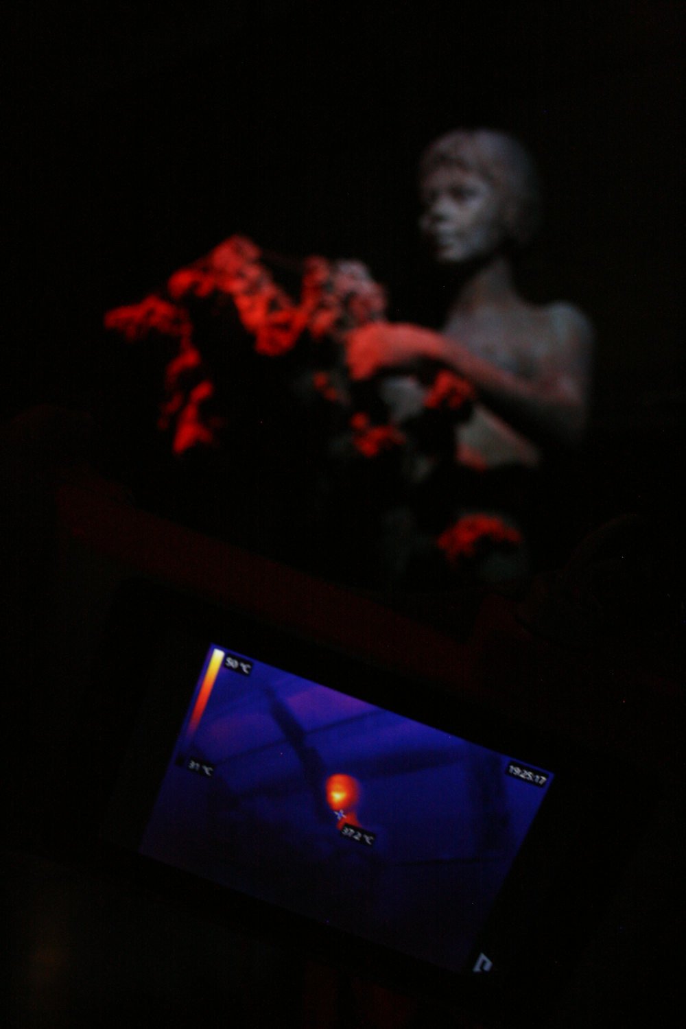 Through the thermocamera, the visitor can discover that the head of the girl is hot.