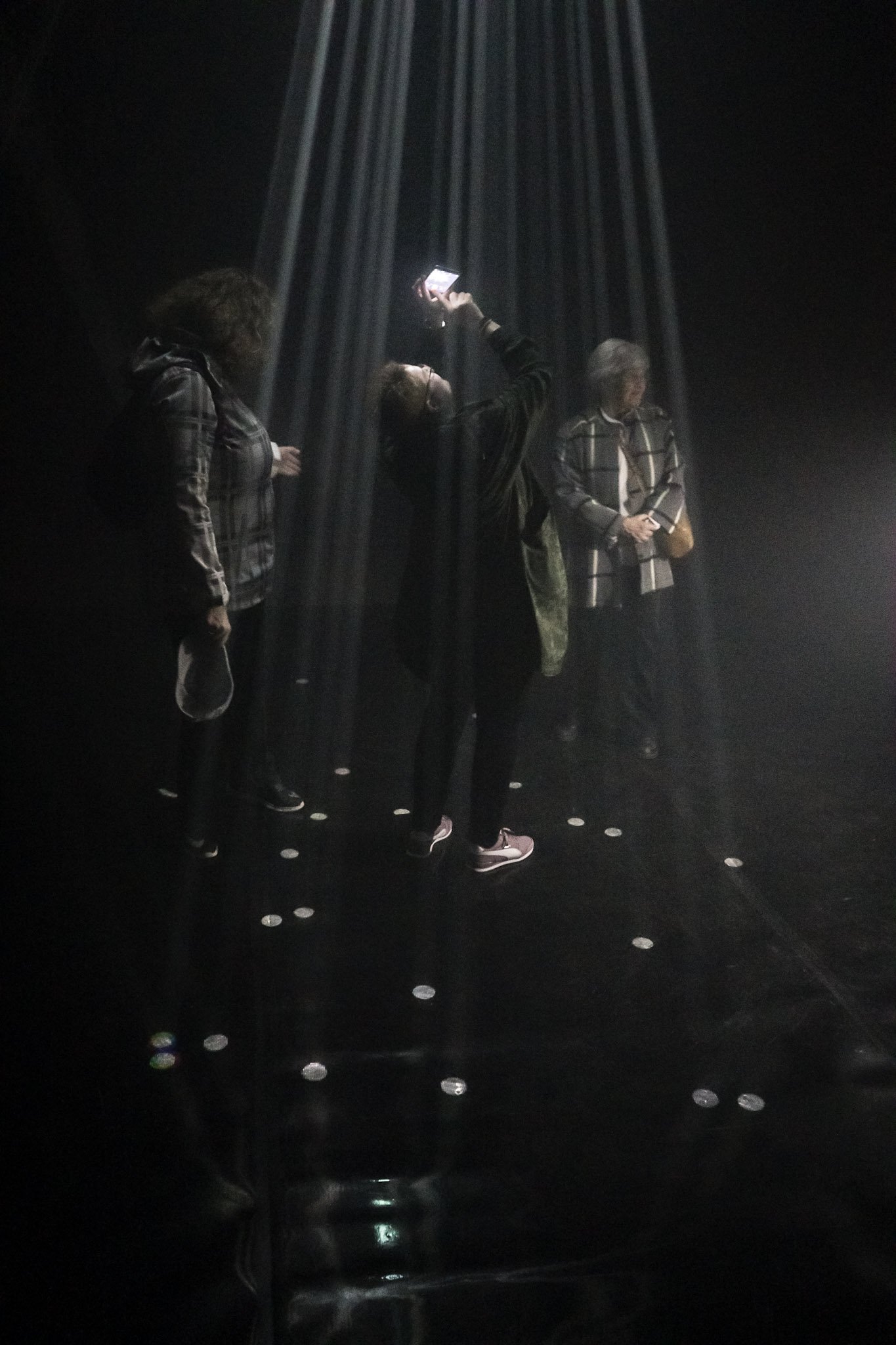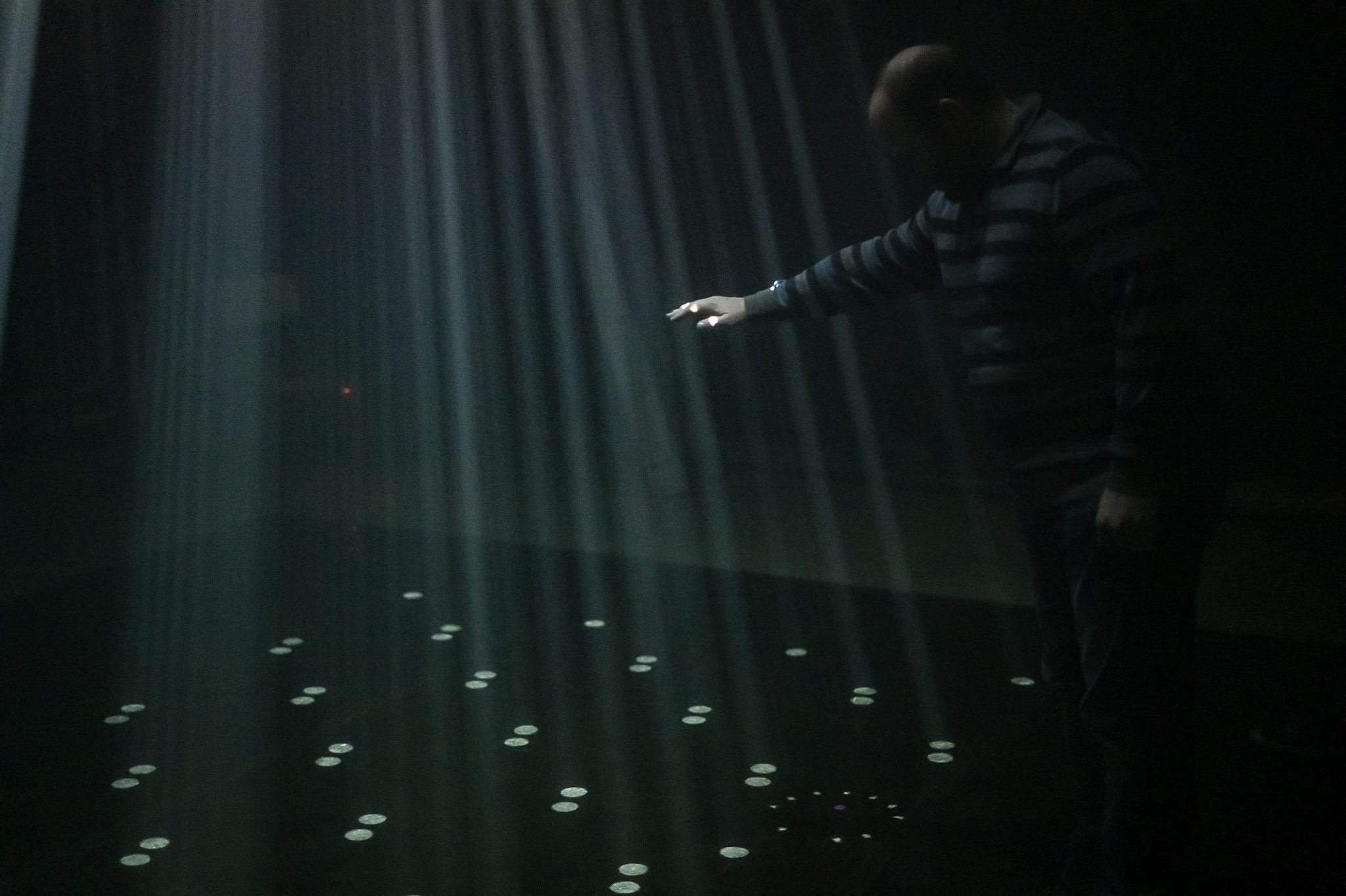 Světelný objekt postupně sice zaniká, ale divák je svědkem a spoluautorem nečekané hudební kompozice.