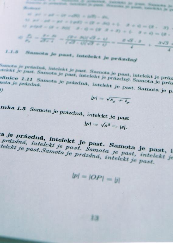 Matematická analýzaIntervence (2011)Vyrobil jsem "kopii" vysokoškolských skript a tajně jsem ji podvrhl do univerzitní knihovny.